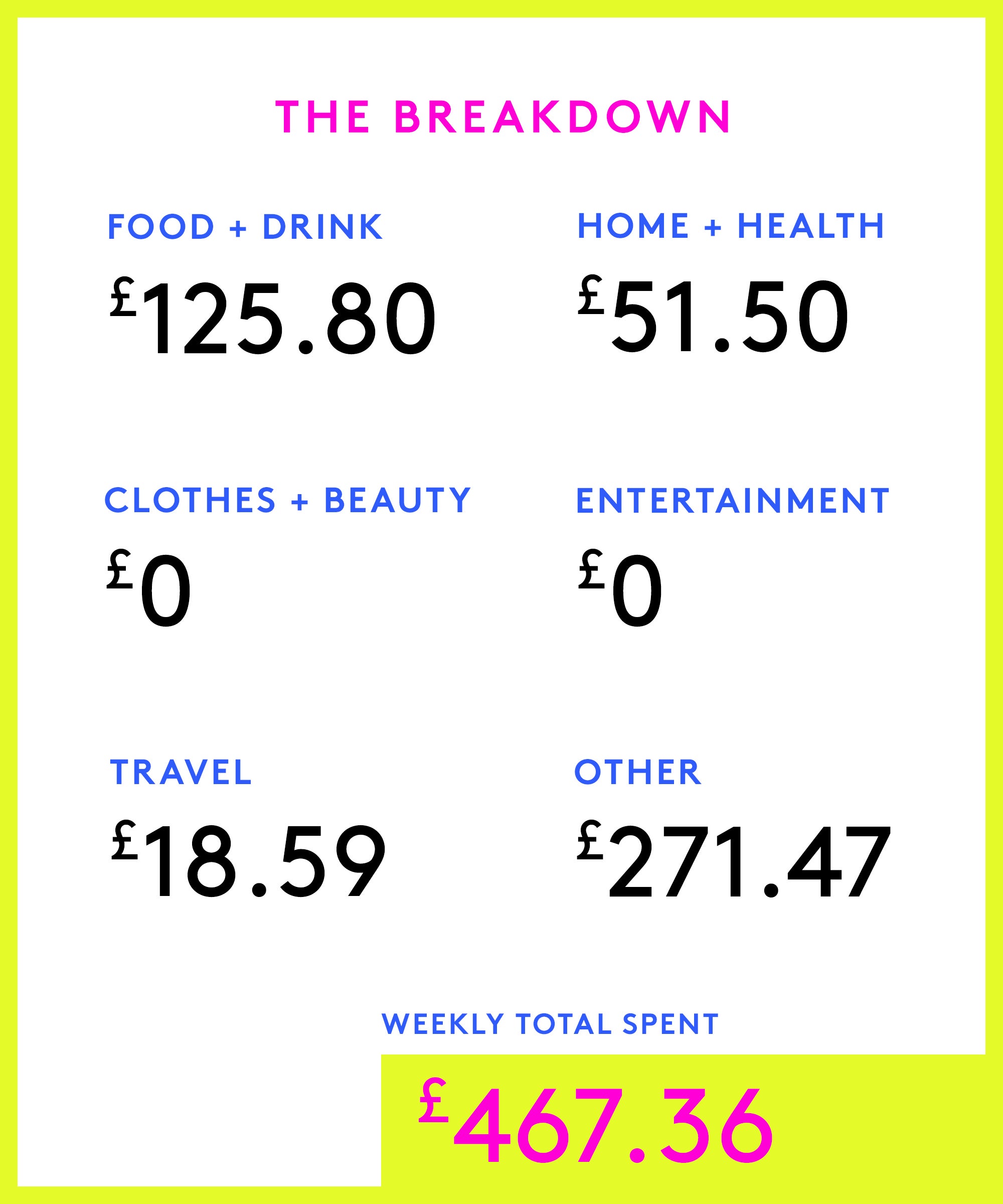 “Bar the weekend away and my dad’s birthday present, this is a fairly typical week for me. It was interesting tracking my money to see what goes where but I don’t think recording stuff has changed my spending habits.”