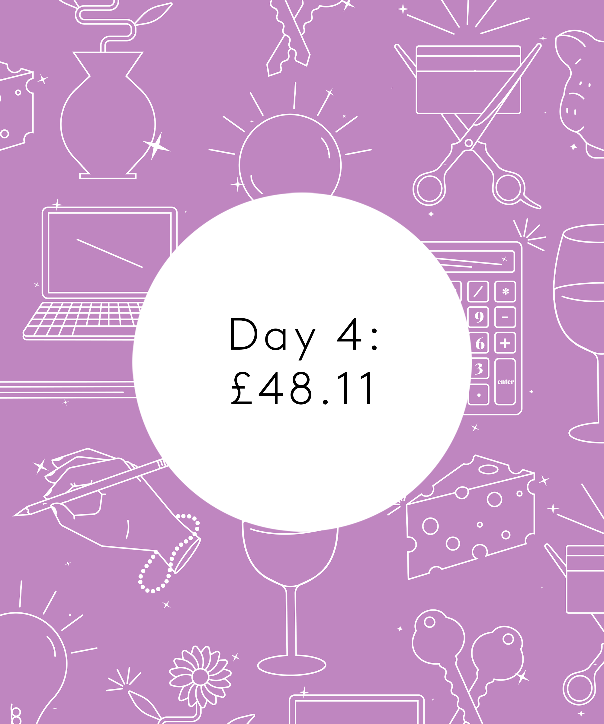 1.45pm: Finally get to the pub I’m meeting my friend at. I order a chicken salad and chips (because balance) and a couple of Diet Cokes (over the time we’re there, not in one go). My salad comes with garlic bread and despite my body’s intolerance to gluten I decide it’s worth the pain and eat it. £17.73