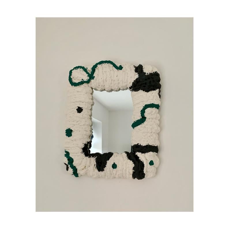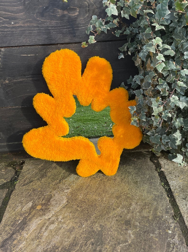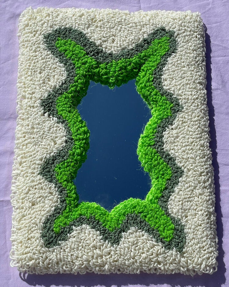 ShopHouseOfJ Tufted Wavy Rug Mirror, $, available at Etsy