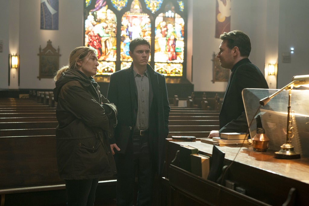 While Mare thinks it’s odd that a 16-year-old girl would call him so late, he doesn’t think it’s strange at all. “We had a relationship,” he says. That word seems to make Mare’s partner Det. Colin Zabel (Evan Peters) uncomfortable and it’s hard not to read into the Deacon’s use of it in this context. But before anyone can get too caught up in his word choice, he continues, saying that he and Erin formed “a friendship” during youth group. He has always made himself available to everyone in the parish, he says, “but especially our youth. I find they need me the most.”