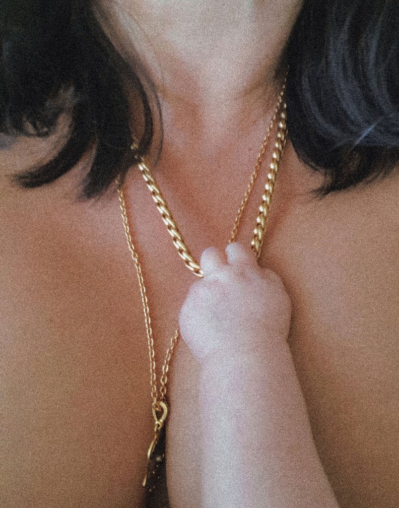 One of Ang’s most memorable pictures from the project is a close-up of her chest, with her baby’s arm reaching up to clutch a little fistful of her gold chains. “This was the first time I noticed that my baby would tug and pull on anything that he could grab…my hair, my clothes, my necklace, my glasses. He would literally hang off me, a permanent appendage. I remember reading that babies don’t understand that they are separate entities and that they even regulate certain physiological functions like heart rhythm and respiratory control on proximity with their mothers.” Another picture that stays with her is one of her breastfeeding, taken from the night monitor in the baby’s room. Grainy and monochrome, the figures of Ang and her son appear as if blended into one indistinguishable form as she feeds him. “I spent so much of my time in the first year of his life sitting in that chair, in the dark, feeling helpless, desperate and unseen,” she recalls.