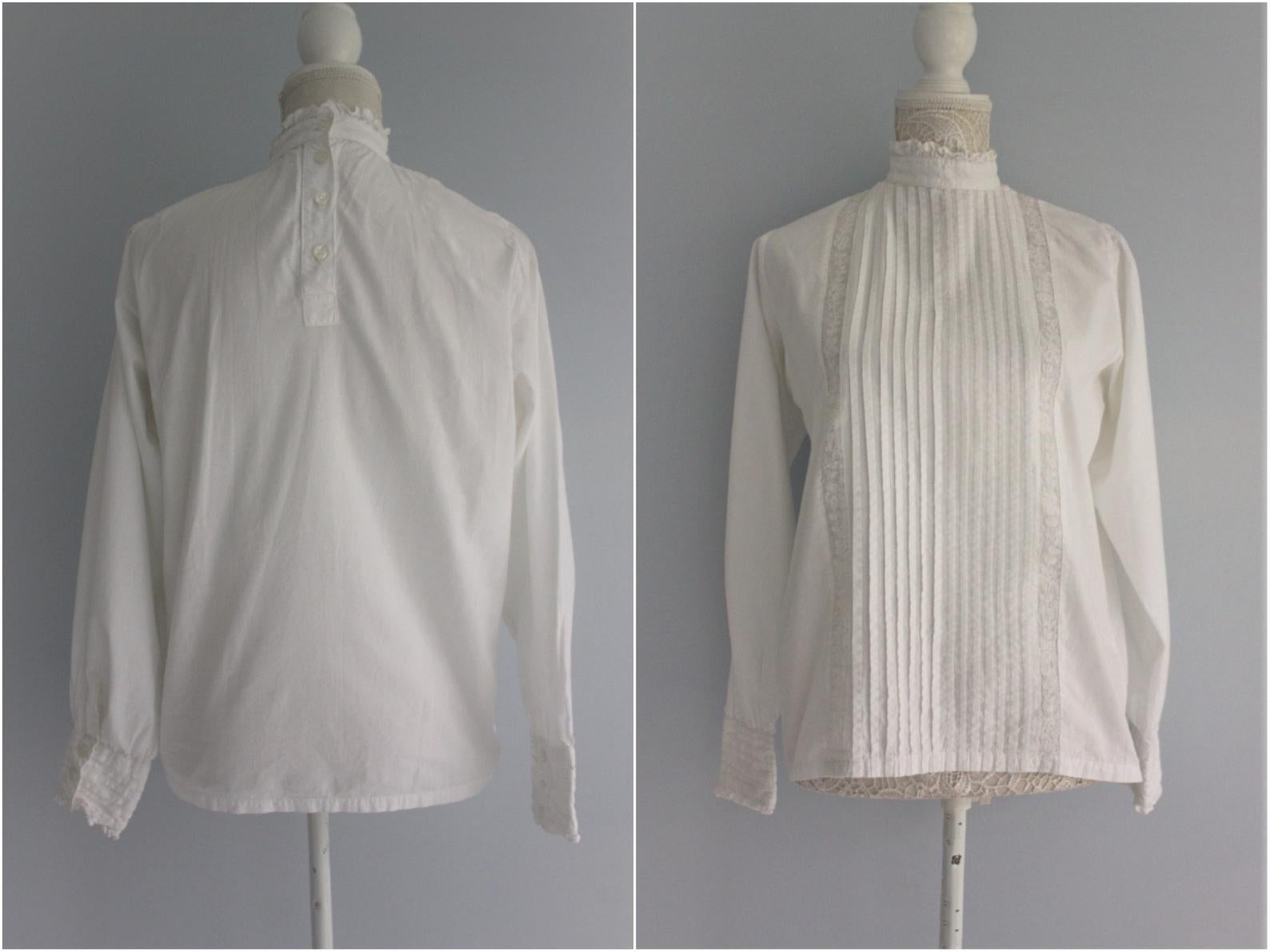 GoingAroundAgain Embroidered High Neck White Cotton Blouse, $, available at Etsy
