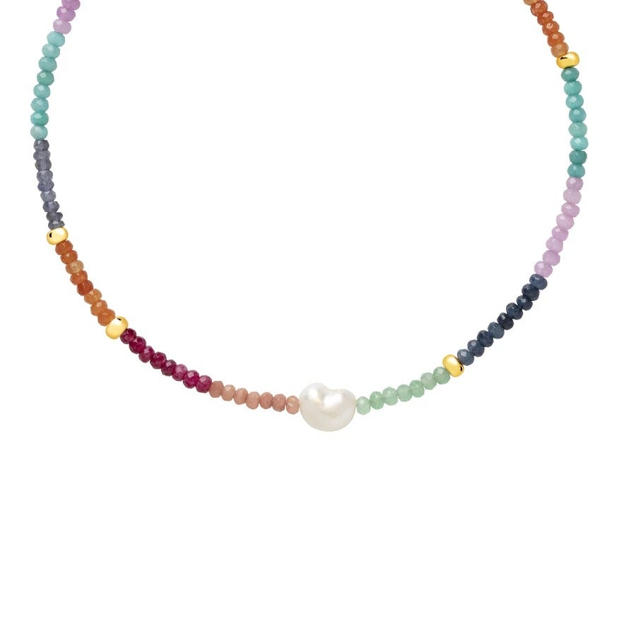 Astrid & Miyu Semi-Precious Rainbow Necklace in Gold, $, available at Astrid & Miyu