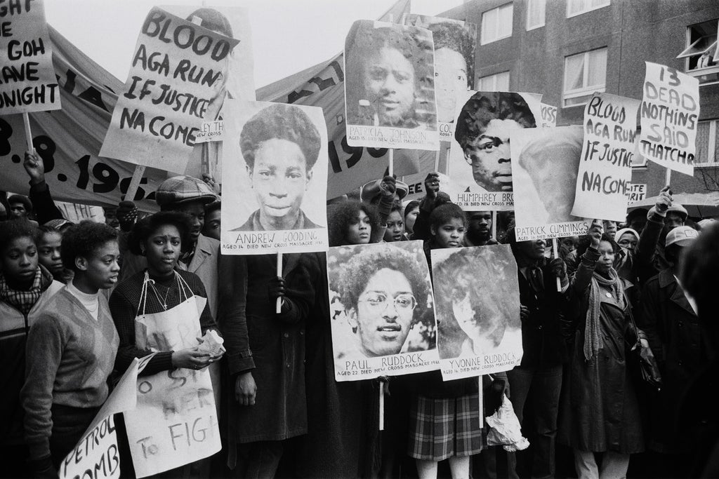 This sense of a shared experience is the crux of what Uprising is all about. I have always felt proud to be part of the Black community in Britain — but there’s a complex, troubled history steeped in racism that often gets left untold. McQueen’s storytelling starts off on a joyful note as Yvonne Ruddock and Angela Johnson throw a joint birthday party at Yvonne’s mother’s house, 439 New Cross Road. Sound systems blaring and curry goat bubbling on the stove, teenagers dance the night away in the multi-floor building. Soon, shouts of “Fire!” echo throughout the property and partygoers are forced to flee for their lives. Survivor Wayne Haynes solemnly explains that the heat was so strong, he could feel the skin falling off his face like grains of sand.