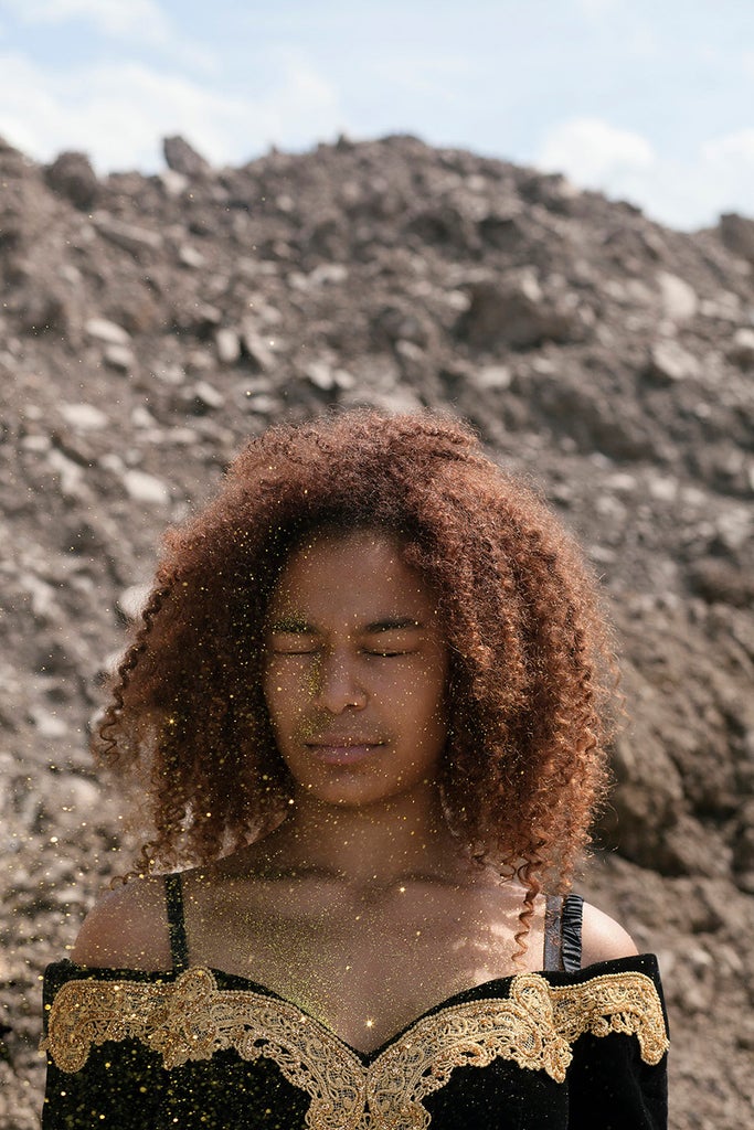 In among these pictures are self-portraits, too — in one image she kisses the lips of an ancient statue, and in another she wraps herself in a thick floral blanket, staring directly into the lens. These images are collected in a project called The Girls Who Spun Gold and that feeling of enchantment we get from the pictures is crucial to our reading of them, she says. “We each inherit parts of our identity that are dependent upon the bodies that we are born into. Our bodies carry histories, stereotypes and possibly heightened access to violence too. We then have to come to understand ourselves within this world. As painful as this process may be, it’s also really beautiful and transforming. There is a magical element to that.”