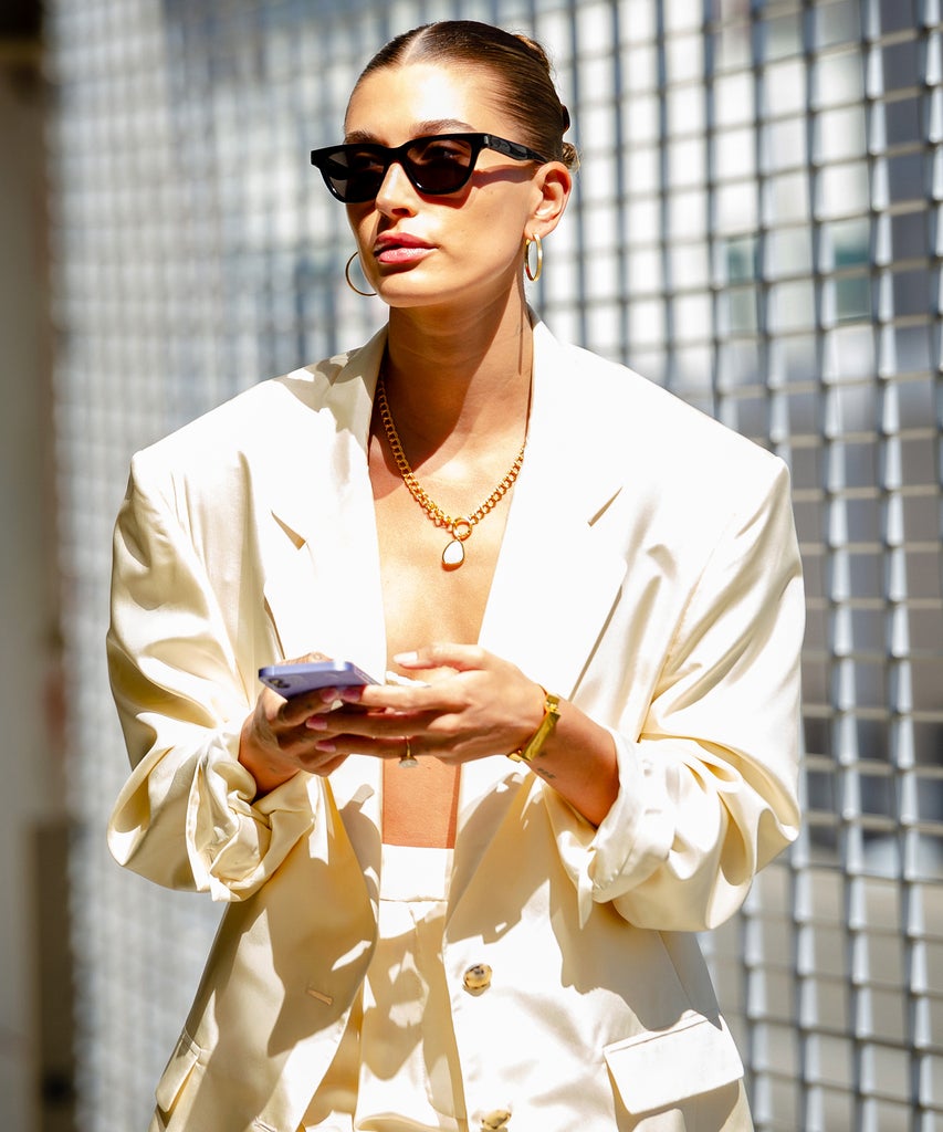 As for her now-trademark slicked-back look, Bieber says that she’s found the style to be both “chic and easy” with the help of the right moisturising and conditioning products. “I style my bun with a bunch of leave-in conditioners and hair treatments, because then I feel like I’m actually doing something good for my hair when it’s pulled back tight,” she explains. “My hair gets greasy really fast, so I’m really only putting product from the mid-length down to the ends.”