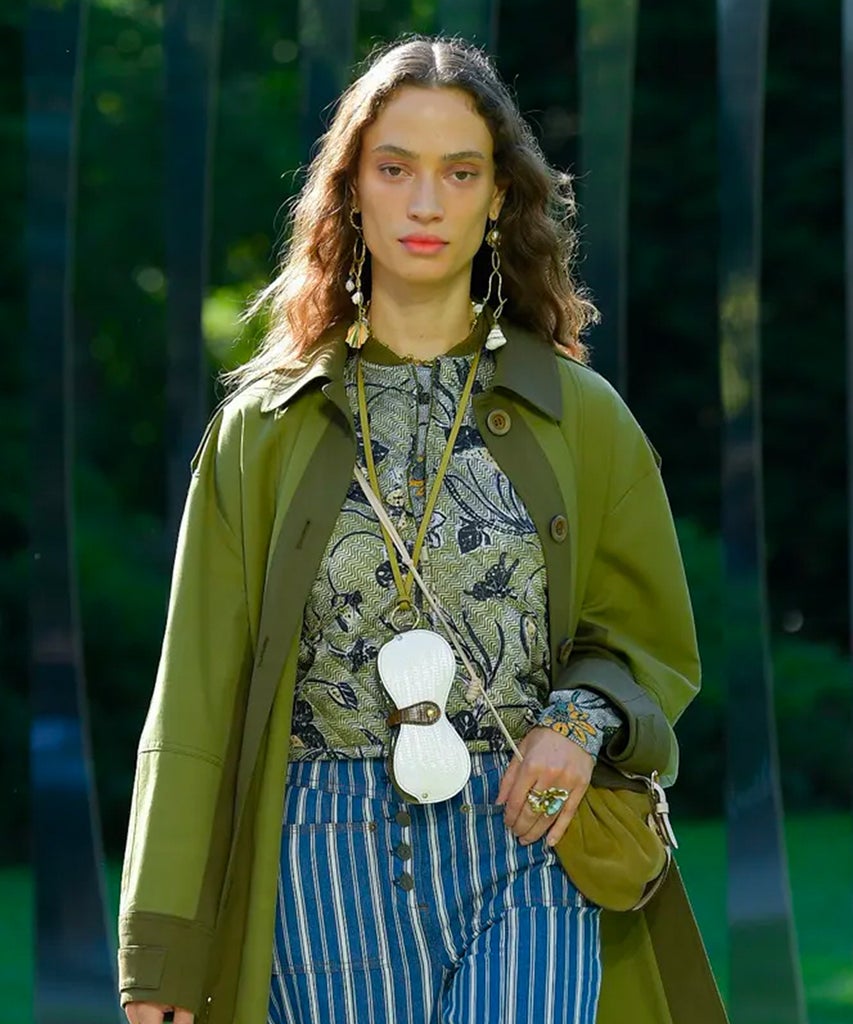 Ulla Johnson made a case for the new beach wave, a style that boasts brushed out ringlets and embraces all the frizz and texture of salty holiday hair. Colour us inspired to swap out our blowdryers this season for some sea salt spray — a bottle easy to carry around with the triple handbag trend also spotted as part of the collection.