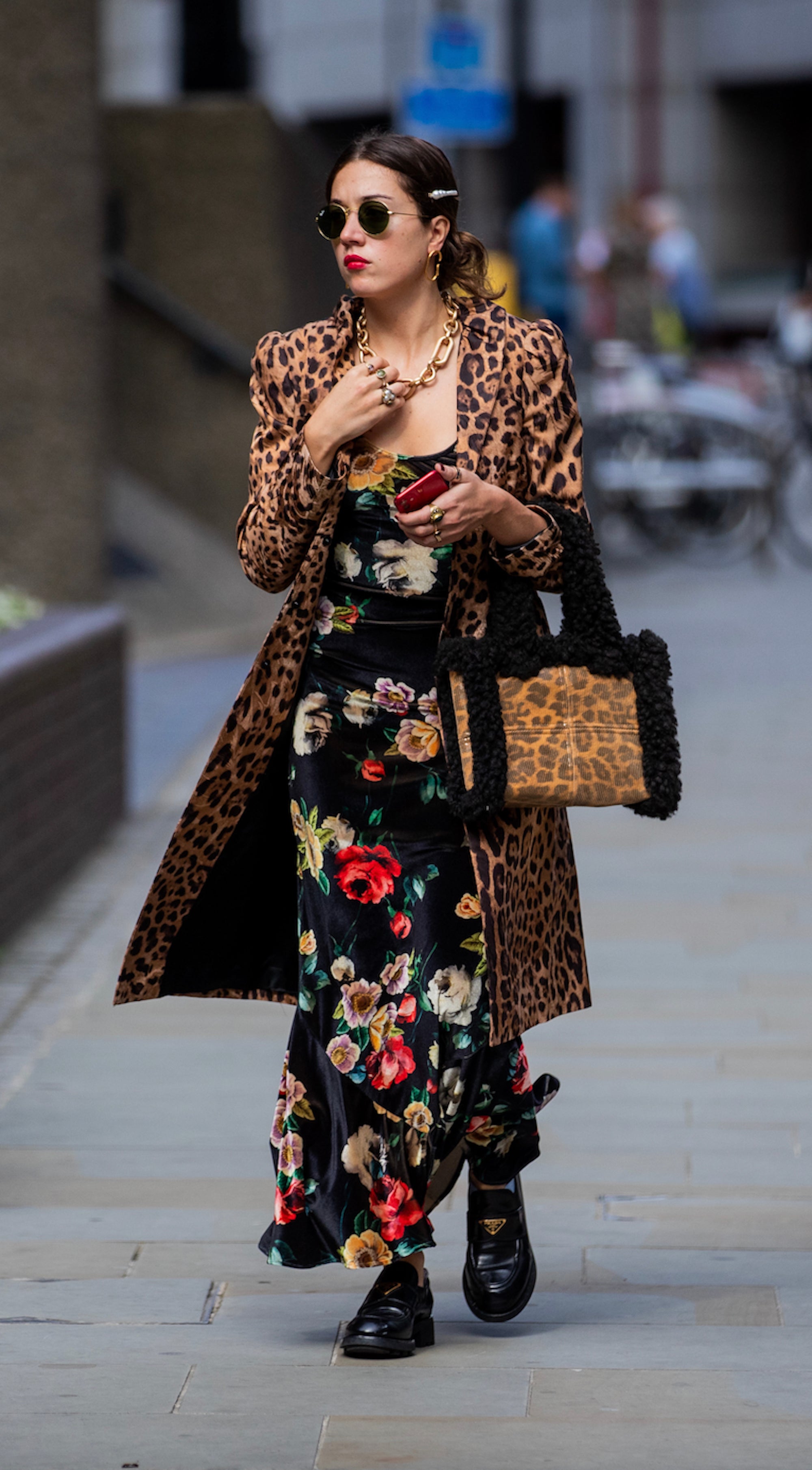 Hot takes from this season’s 27°C New York Fashion Week include Y2K low-rise jeans, cut-outs and tube tops. Despite a burst of late summer sun in London, things are decidedly more covered up, with light knits and structured denim making regular appearances. Levity is introduced through chintzy textures, mismatched patterns and colour blocking.