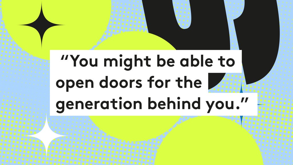 A: Research the industry you want to be in and what skills it requires. It’s definitely a mixture of owning it and saying it out loud but actually putting the work behind it to make it happen.