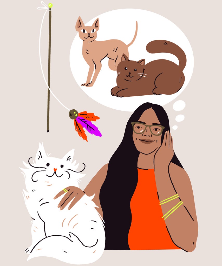 I did get some “cat lady” jokes, even from close friends, especially in conversations about romantic relationships. “Your ideal guy would probably just be a cat,” is a comment I’ve heard one too many times, and it bothered me. During the pandemic, I often responded to questions about whether I was dating at the moment by saying some version of, “My hands and heart are full with my work, my friends, and my cats.” But people reacted by chiding or teasing me; sometimes, I even felt pitied. It made me wonder if there was something wrong with me. At one point, I felt so unsure of myself that I downloaded a couple of dating apps, swiped, and had half-hearted conversations with some matches. I also — self-consciously — reduced the amount of cat content I was posting on social media, because the “cat lady”-adjacent compliments I received had started feeling like backhanded insults about my singledom.