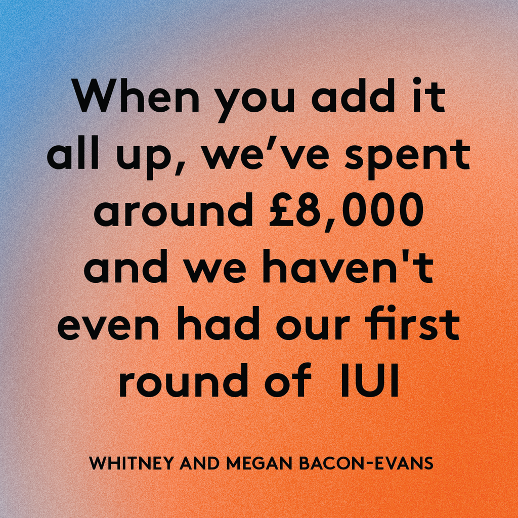 They had to buy sperm from the sperm bank at around £1,000 per vial, with one vial per round of IUI. Then there are other mandatory costs. “In order for us to have artificial insemination, we’ve had to pay to have our egg levels checked and our uteruses scanned, our doctor’s consultations to talk about it and my tubes checked,” says Megan.