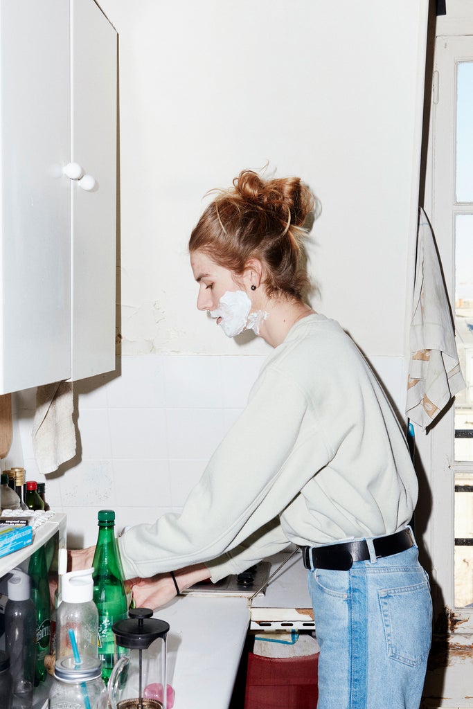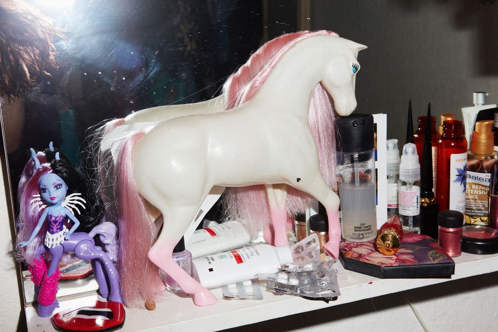Blending documentary and fashion photography, Ferrané uses a direct flash in all of his pictures, unifying them with a clean and piercing style. “The details of a stack of objects and an intense gaze into the mirror have the same importance,” he explains, so using the same light across the board allows him to treat all subjects with a kind of equality. He wanted to search for moments that everyone could relate to and make pictures that would invite us to consider the incarnations of ourselves we put out into the world. His subjects seem to forget his presence in the end, comfortable with him being there.