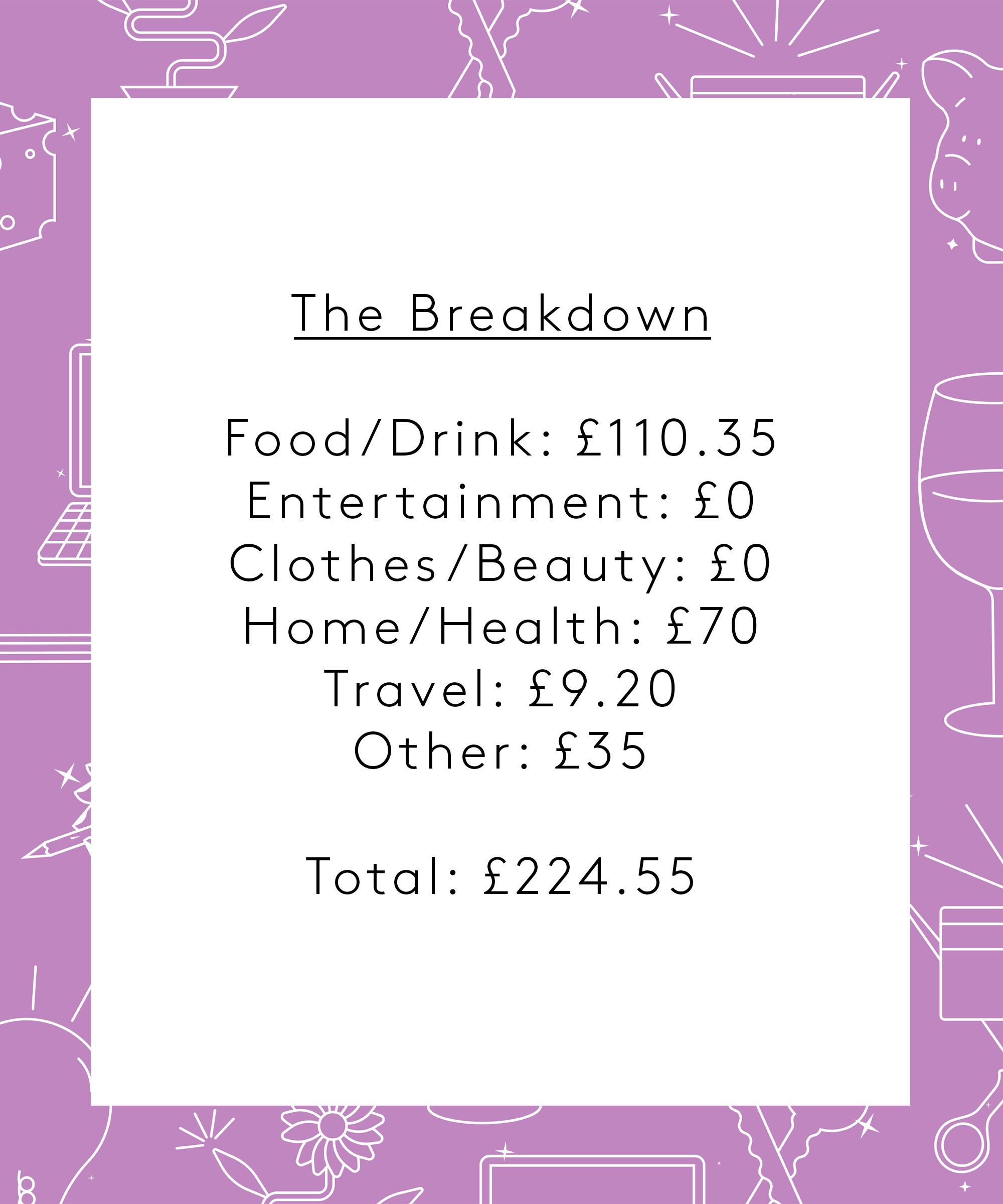 Loan payments: £200 for a 0% interest credit card that should be paid off in February 2022. My student loan is deducted from my payslip each month.