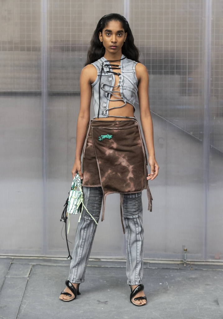 As Lee postulates, the look feels like a natural evolution of the subversive basics trend that, as fashion forecaster Agustina Panzoni (@thealgorythm) noted, saw us swapping out our t-shirts and tanks for strappier silhouettes with unexpected cutouts and mesh fabrics, and gave rise to Gen Z’s DIY craze.