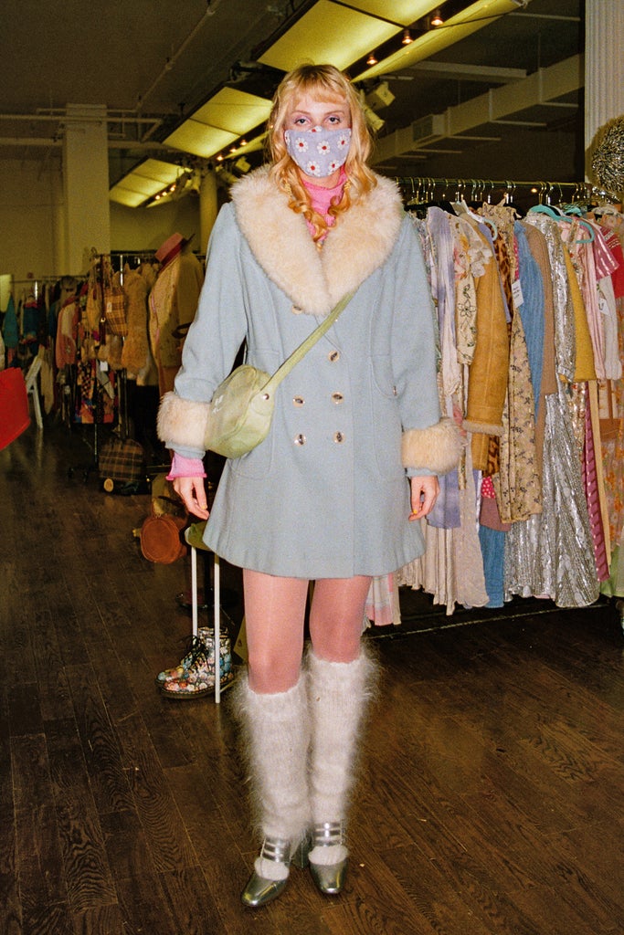 There were also quite a few contemporary dressers. Take, for example, attendees donning Demna’s Balenciaga and recent Marni collections. For some, their purchases ended up becoming part of their outfit. Annika White, a Depop vintage seller, put on the pale blue coat with fluffy trim she had just bought to match her equally plush socks, an Etsy purchase handmade in Ukraine.