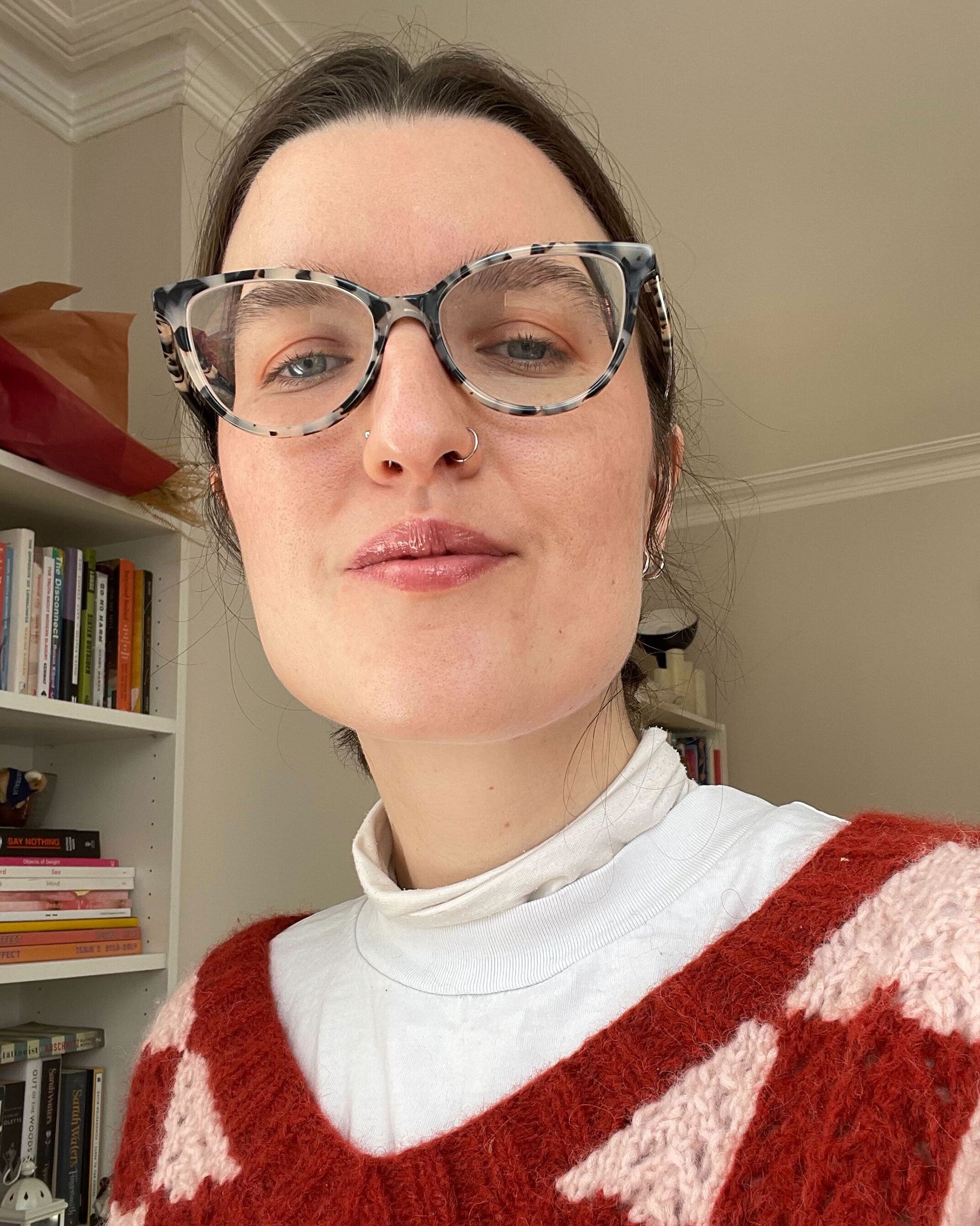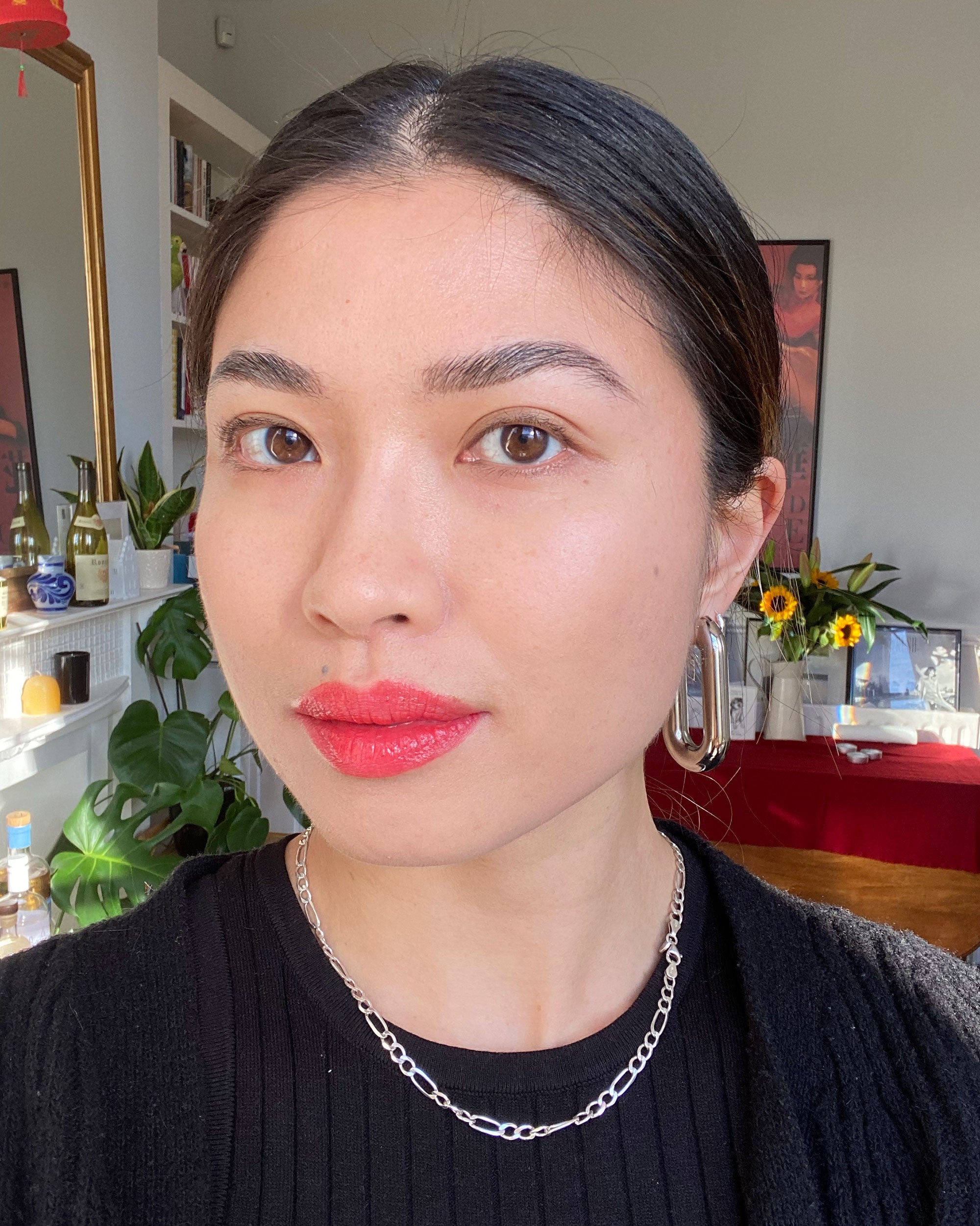 “Embarking on this would genuinely be the first time I have worn eyeshadow since about May 2020. I have poor eyesight and have been less inclined to wear contacts as the years have gone by so I essentially have to relearn how to put on eye makeup. All I knew about this collection was what R29’s senior beauty editor Jacqueline told me (that it’s very hyped but the hype may well be worth it) and I trust her beauty judgement more than anyone — even Selena. For that reason, I was excited to dig in. I went for the Glossy Lip Balm in Nearly Neutral, £16, as a matte lip cream felt too much for a Monday morning (no hate to the matte lip cream fans). It’s a LOVELY product: glossy but not sticky, tinted enough to make lips look fuller with a pop of colour but subtle in a way you could forget you have it on and just think you’re having a good lip day. Is that a thing?