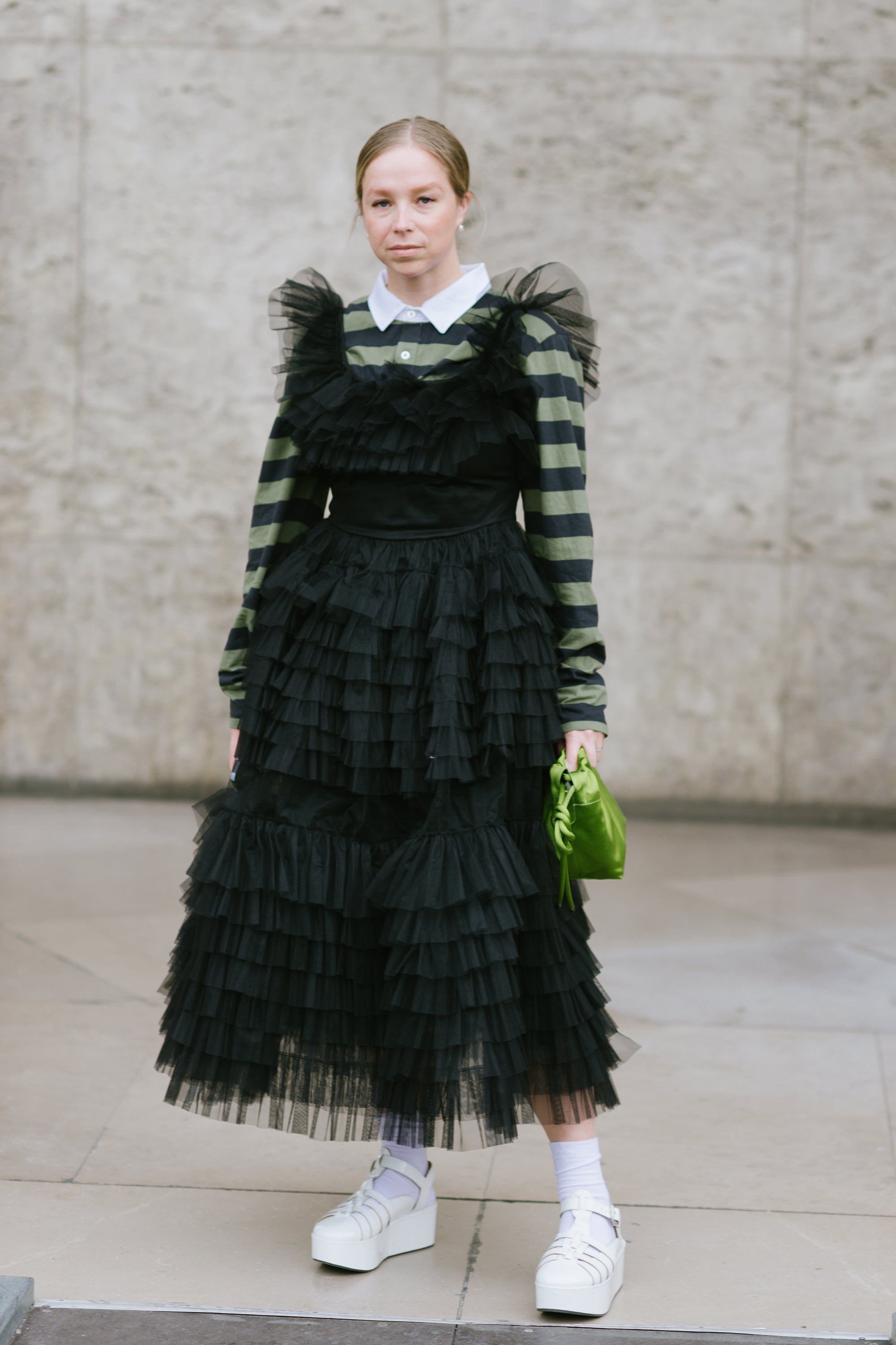 Business on top, party everywhere else. Photo: Christian Vierig/Getty Images.The micro mini skirt suit is officially here. Photo: Edward Berthelot/Getty Images.Haven’t you heard? Harnesses are a workwear trend now. Photo: Daniel Zuchnik/Getty Images.Bring the party with you. Photo: Edward Berthelot/Getty Images.The neon craze continues. Photo: Edward Berthelot/Getty Images.It’s the green-on-green-on-green for me. Photo: Daniel Zuchnik/Getty Images.A silky trench is a spring must-have. Photo: Daniel Zuchnik/Getty Images.Photo: Edward Berthelot/Getty Images.Photo: Edward Berthelot/Getty Images.Photo: Christian Vierig/Getty Images.Photo: Christian Vierig/Getty Images.Photo: Vanni Bassetti/Getty Images.