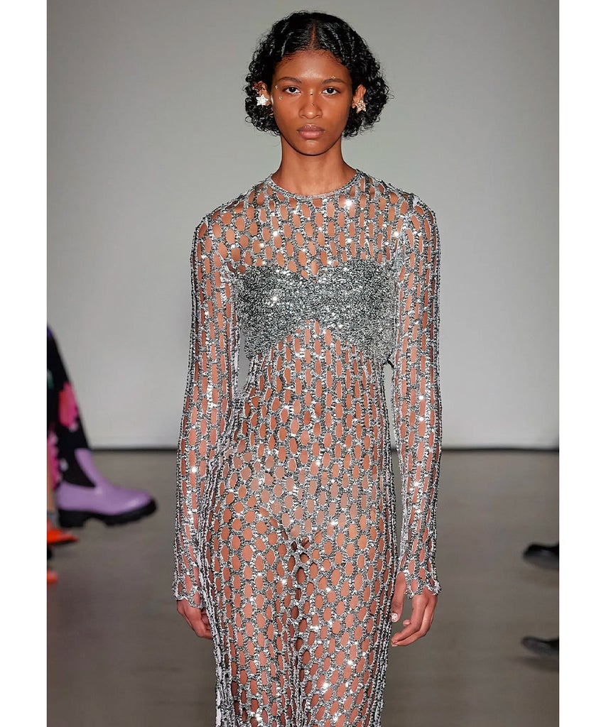 Most notably, MSGM’s ready-to-wear collection was a dizzying display of other-worldly glamour. Featuring Milky Way prints, mesh, sequinned embroideries, bright patent leathers, intricate silhouettes and cut-outs, it’s no surprise that designer Massimo Giorgetti’s inspiration stemmed from a scientific breakthrough. When the designer heard that researchers had discovered a new celestial body whose existence had only been predicted by mathematical modelling but never actually observed, the vision for his latest collection sparked. And we’re tipping this theme of futurism and the space age to be dominant themes amongst 2022 trends.