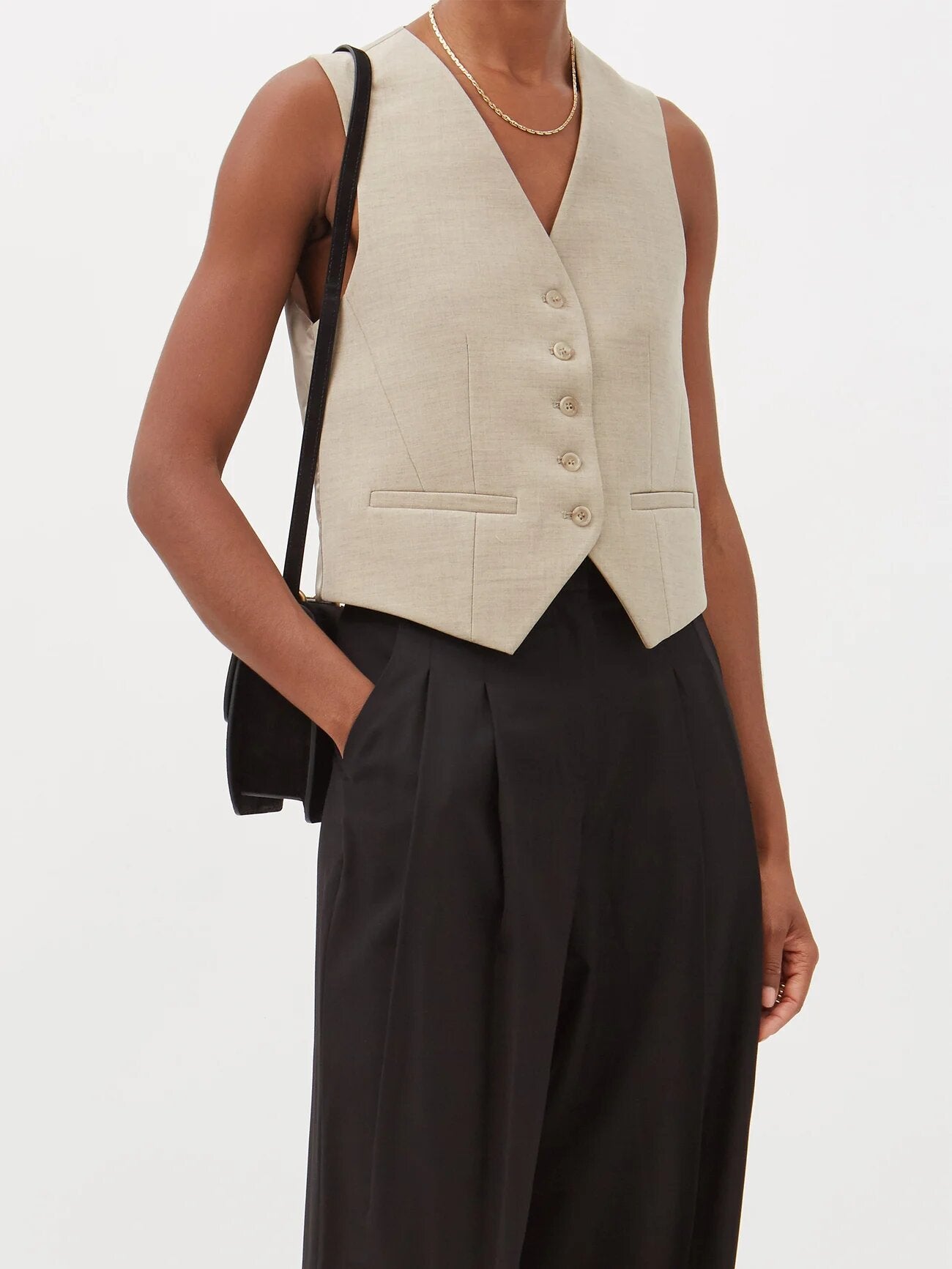 The Frankie Shop Gelso Tailored Waistcoat, $, available at Matches Fashion