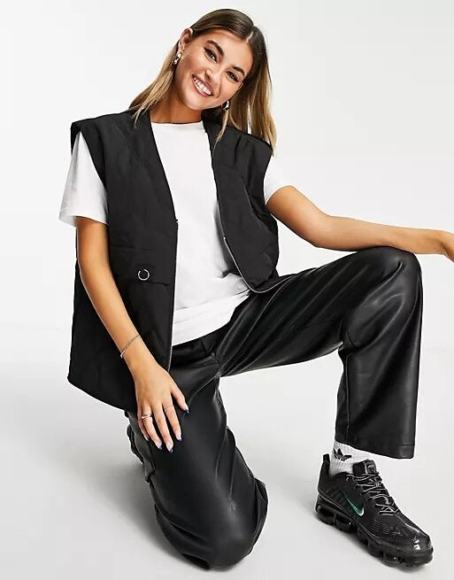 Topshop Boxy Quilted Liner Gilet In Black, $, available at ASOS