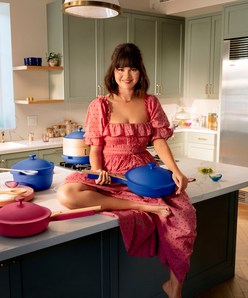 As the kids would say, we did not have actress, singer, and entrepreneur Selena Gomez collabing with Our Place on our 2022 bingo cards — but we accept it with open arms. Some recognise her as a Disney legend and star of Wizards Of Waverly Place, others know her as the founder and face of best-selling makeup brand Rare Beauty. We can even call her an amateur chef thanks to her cooking show, and, as of today, we can now deem Gomez a colourful cookware aficionado. Because, after bonding over a mutual respect for home-cooked meals, she and Our Place founder Shiza Shahid concocted two brand new eye-catching colourways available on site now: Azul and Rosa. (Set to ship early July!)