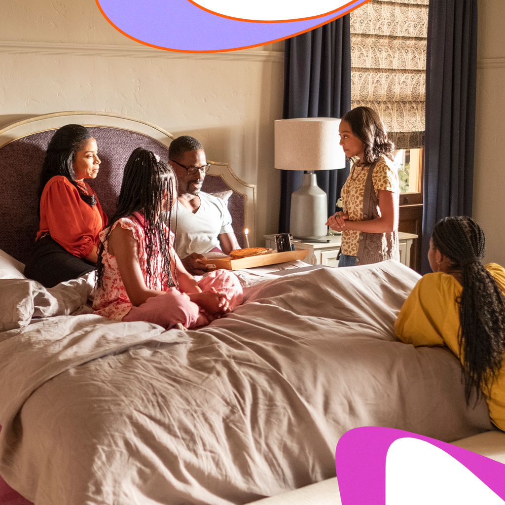 Kelechi Watson: I just wanted them to be real. I was in awe at how many people still don’t recognise that Black people live very normal lives, just like regular people. I was in awe. I was like, “Really?” We didn’t have to be anything that felt in any way over the top or in any way, super stereotypical or anything like that. We could just be a normal American family in a house in the burbs, two kids, two cars, two-income family home. And I don’t want to say we happen to be Black because I’m very specifically Black and that’s a beautiful thing, but that’s it. I just didn’t want it to be anything more than that. It meant a lot to me for them to just be normal folks. And that’s what we did for six years, we were a family and that was it.
