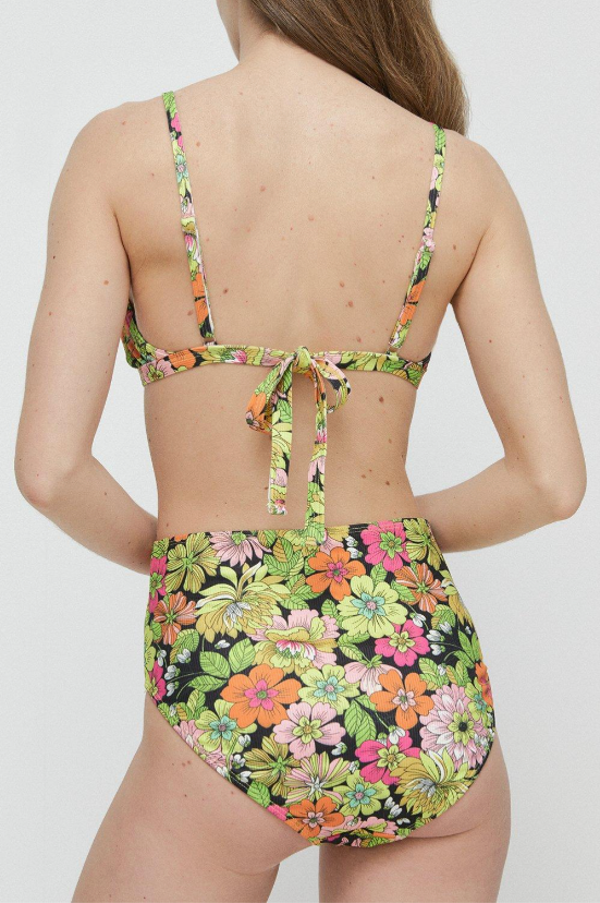 Warehouse Floral Ribbed High Waisted Bikini Bottoms, $, available at Warehouse