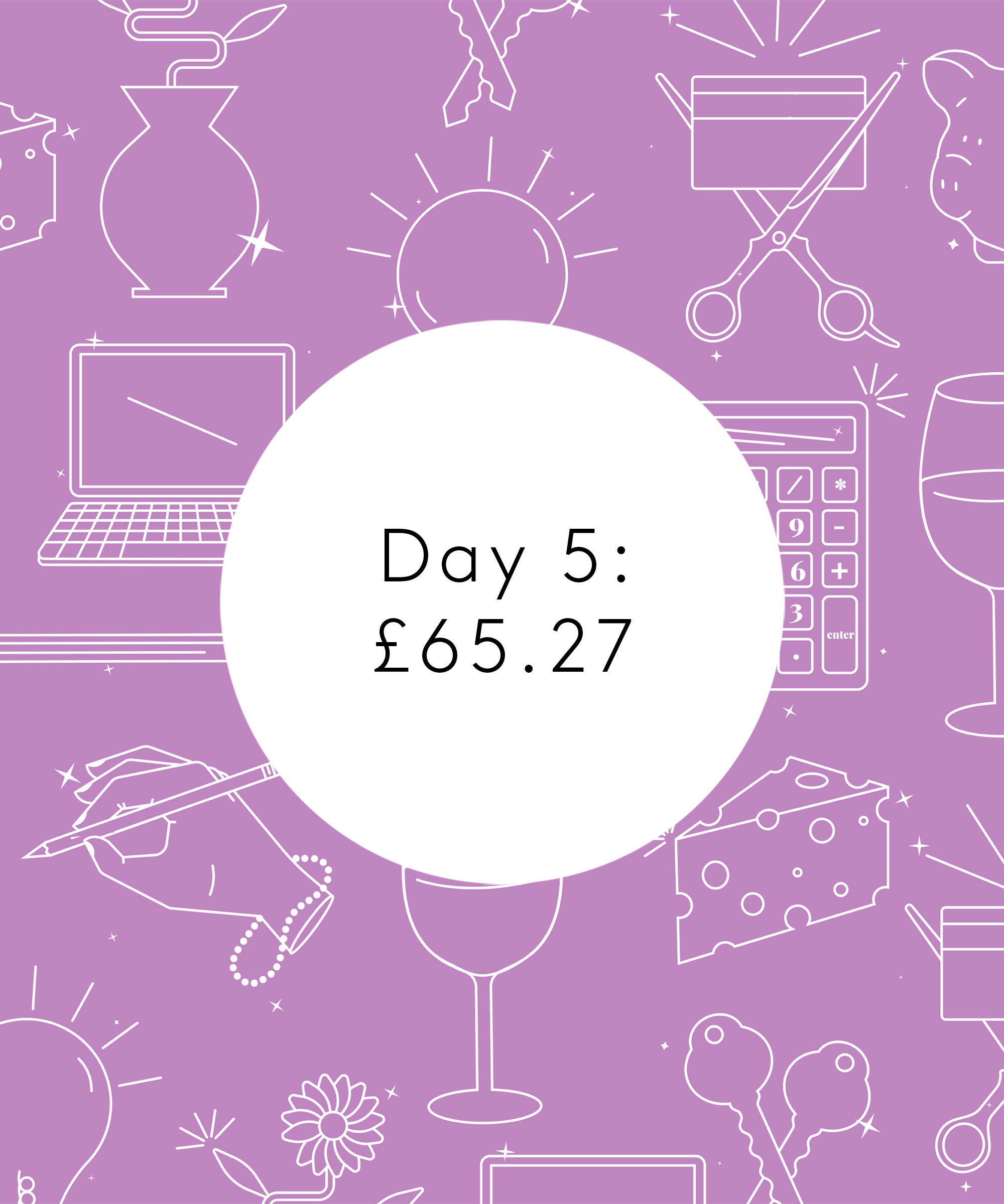 9.30am: I call a taxi company to book one to take us home from a night out tonight, £22. We have free tickets to our local cinema as part of an annual membership I bought H for Christmas. We will get the train there so I can have a drink as I am always the designated driver (H is yet to pass his driving test and we can’t afford lessons right now).