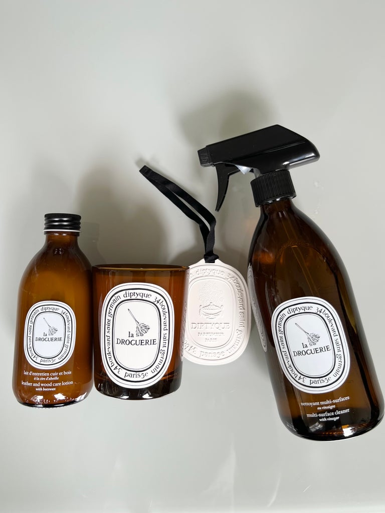 I never thought I’d use the word “luxury” to describe cleaning products. In fact, tidying up my flat is one of my least luxurious obligations. However, one does not mention the famed, status-defining Parisian parfumerie Diptyque without sprinkling opulent adjectives into their sentence like bacon bits in a Caesar salad. So, you can understand the cognitive dissonance that clouded my brain as I held the brand’s debut — you guessed it — luxury cleaning product collection La Droguerie in my glove-adorned hands.