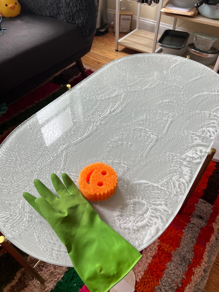 The entire line consists of an odour-removing Diptyque candle, dishwashing liquid, a dish brush, a multi-surface cleaner, a scented ceramic for fabric, some leather and wood lotion, and handy product refills. When it arrived, the package’s aroma (I received everything minus the dishwashing liquid, dish brush, and refills) transported me to an enchanted forest comprised of lush coniferous trees, fresh lavender sprigs, and unusual yet complementary tangerines. But fragrant does not equal effective, so I placed my skeptic hat atop my head and put all four home cleaning goods up against my apartment.