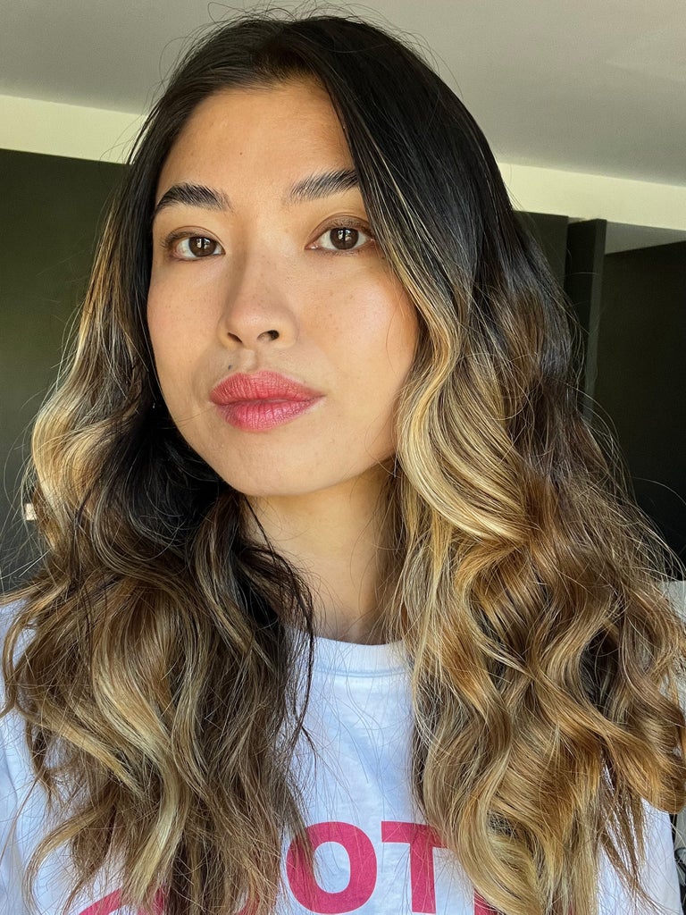 Hair concerns: “Dry at the ends but oily at the roots. It has also sustained box dye jobs and lots of bleach and is quite brassy and orange.”