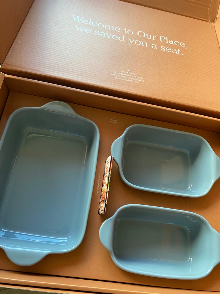 Meet Our Place’s latest launch: the Ovenware Set, a five-piece set of everything (truly, everything) you could ever need to bake, roast, and generally cook up a storm. As a proud owner (and lover) of the Always Pan, I had very high expectations for its foray into bakeware. The set is available in a variety of familiar colourways (the five shades match the original shades of the Always Pan and Perfect Pot), ranging from sandy beige to sage green. I went with Blue Salt, a muted light blue that instantly brightened up my apartment’s kitchen. Ahead, keep reading as I test-drive Our Place’s hottest new launch.