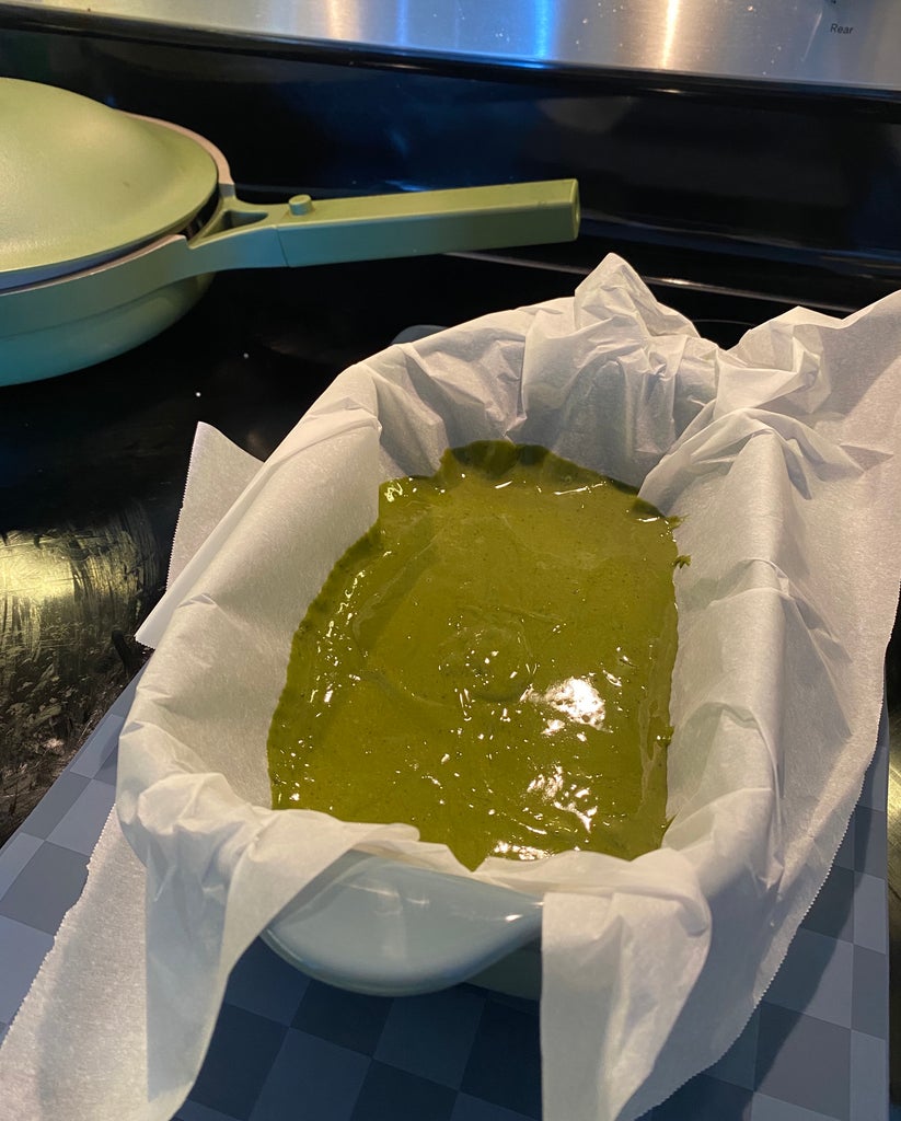 Our Place kindly gifted me a set to review, and I unboxed it probably within seconds. Not only were the pans absolutely gorgeous, but they were beautifully crafted and felt sturdy in my hands. The set consisted of three ceramic “bakers” (aka loaf pans) in three sizes, plus a sheet pan and a reusable, nontoxic silicone Oven Mat. As someone who both loves to consume and create baked goods, I was beyond excited to put them to use ASAP. I settled on a recipe for one of my favourite Japanese desserts, a matcha-infused castella. (Castella is a fluffy honey cake similar to pound cake.)