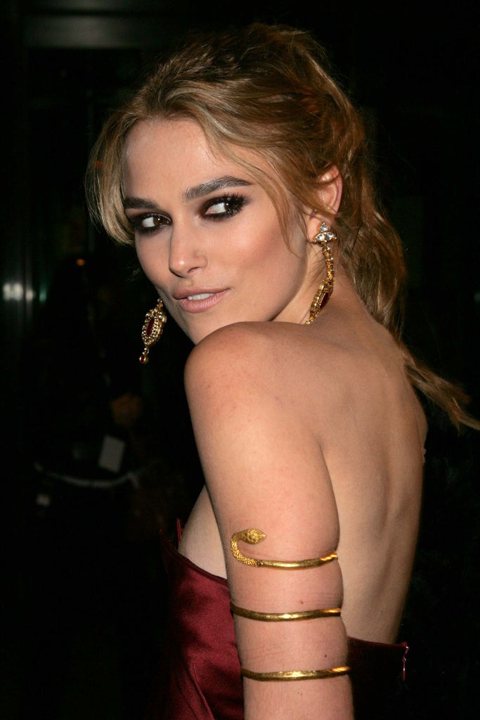 While the arm cuff was ubiquitous 20 years ago, it hasn’t been as quick to return as other Y2K accessories like Bratz-approved platforms. Maybe because, back in the early 2000s, the accessory looked borrowed from a costume department and featured garish elements like animal heads (see: Knightley’s snake-shaped cuff above) — a look more fitting for a Game of Thrones episode rather than real-life fashion.