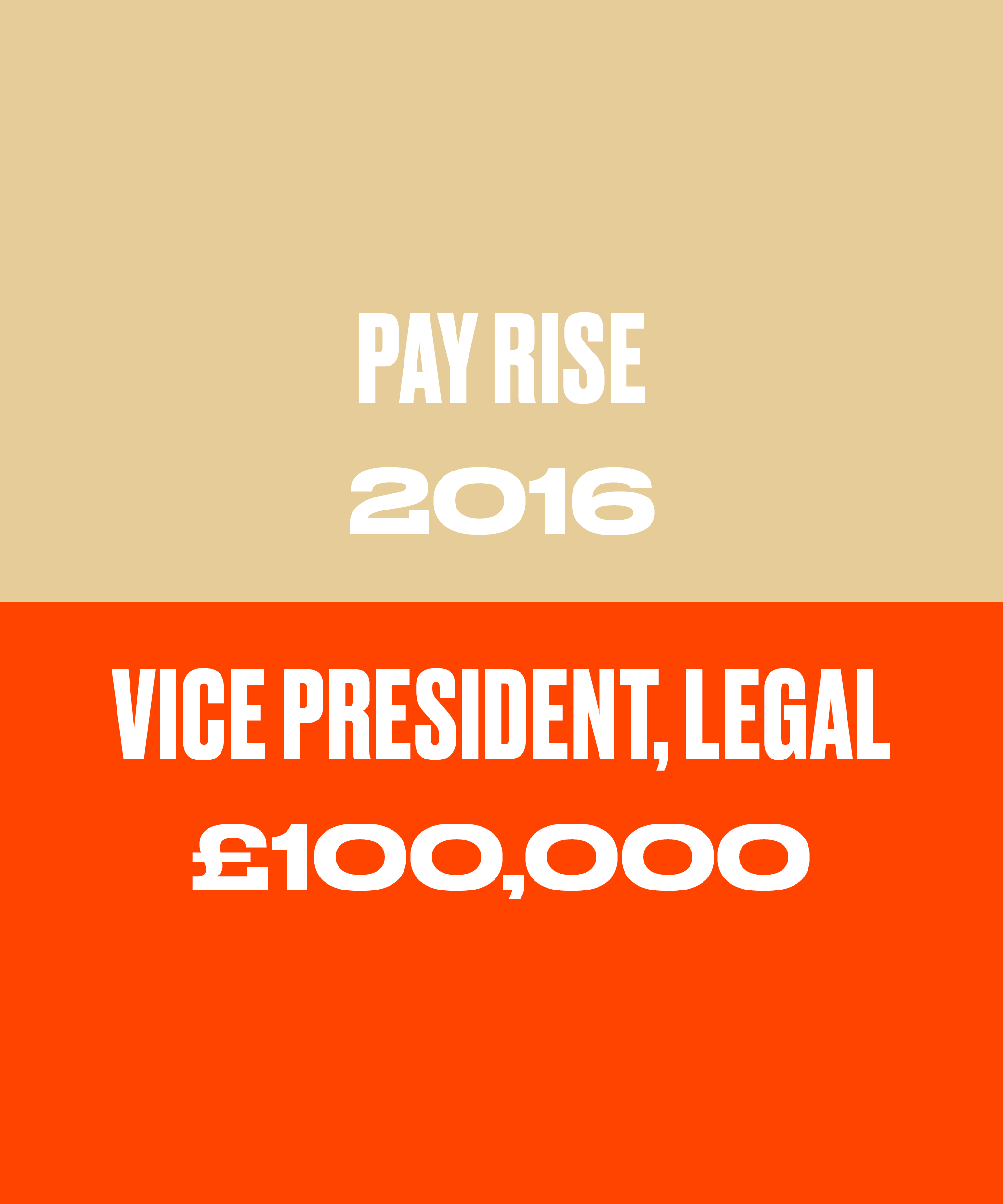 Starting salary: £40,000 in 2010 Biggest salary jump: £45,000 to £96,000 in 2012 Biggest salary drop: £112,000 to £96,000 in 2016