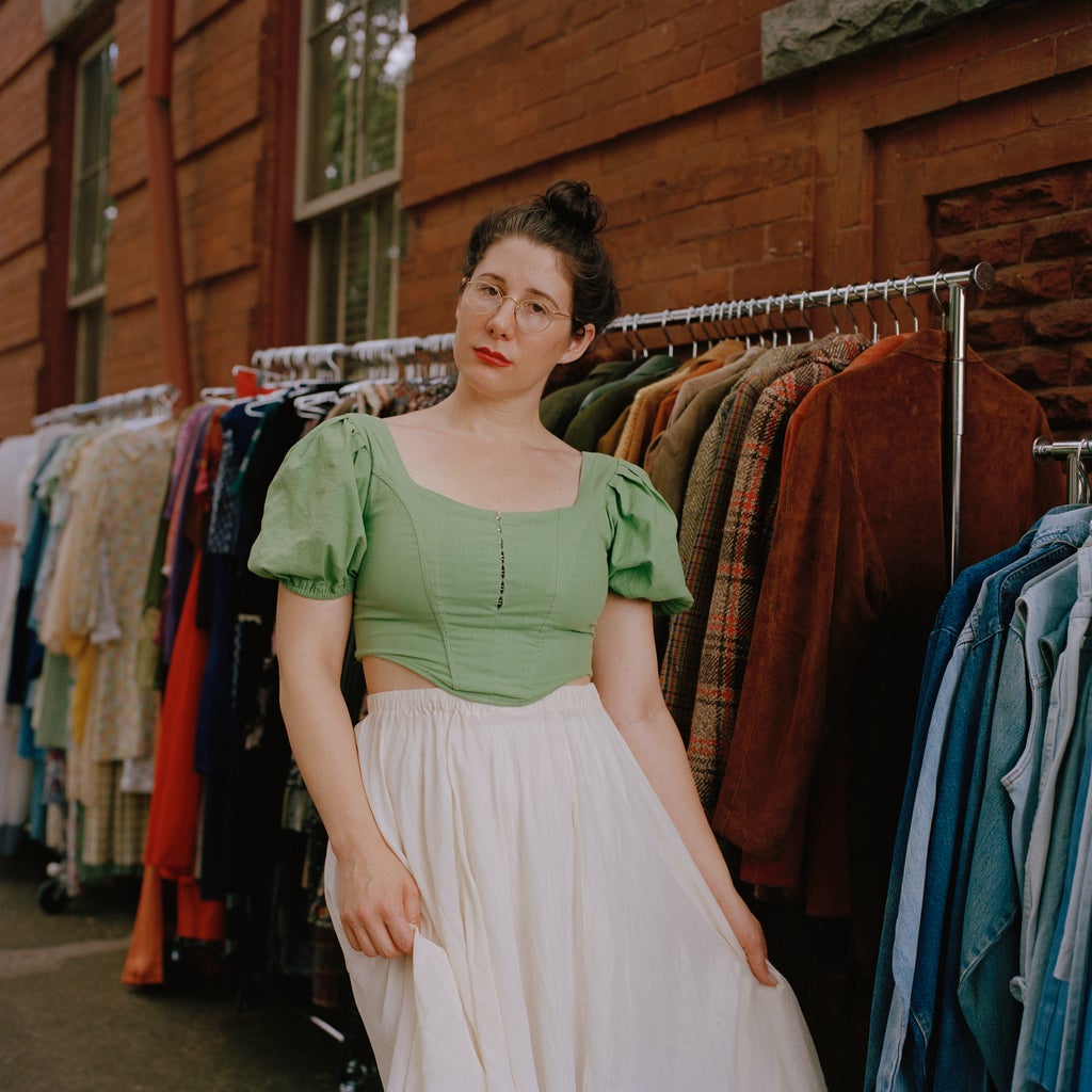“I am really attracted to architectural elements. Even though this shirt is based on a design from the mid-1800s, I like the strong linework in it. A lot of the pieces in my wardrobe feel very romantic. I am attracted to clothing that feels very ethereal.” — Allyssa Peace, 35, vintage reseller
