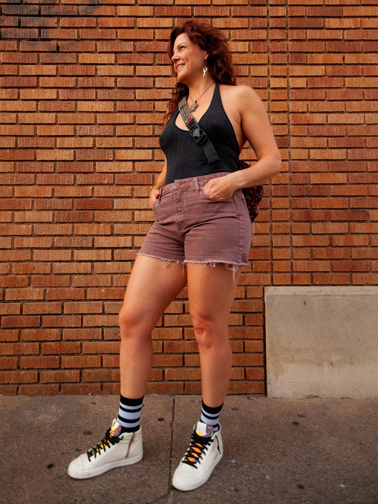 “My style is a cross between Lara Croft and skateboarding street style. It’s pretty casual. I like to keep it simple.” — Amber Terry, 44