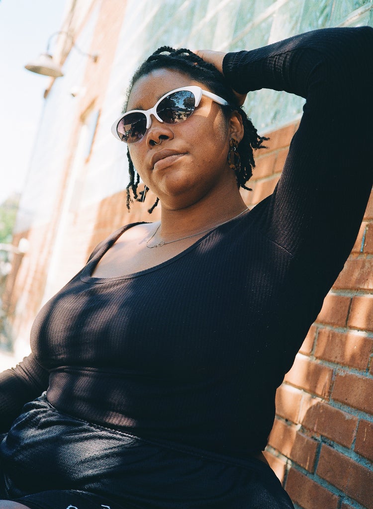 “[For this outfit], I saw a picture of Solange, and I was like, ‘Okay, let’s go from there.’ [For my everyday style], I like something very functional and sleek, and something, if I have to run, I can run in.” — Crystal Gause, 28, barista