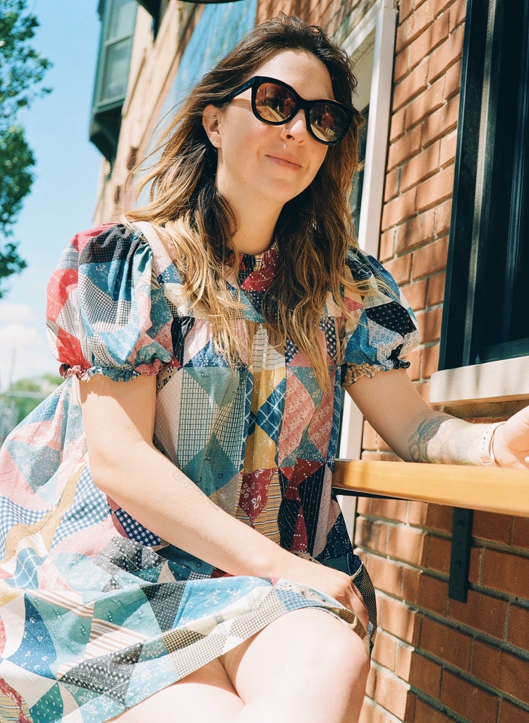 “This is a DÔEN dress, and I fell in love with it. It’s roomy, it’s comfortable, I felt it was a bit of the haunted doll aesthetic without being too much of the haunted doll aesthetic. On my feet are Birkenstocks which, to this day, are the most comfortable shoes I‘ve ever owned. I used to have a better answer, but I am also the mom of a 22-month-old, so [my style is based on] what’s comfortable, what doesn’t need dry-cleaning? I like colour, comfort, and investing in good pieces that will last me a while.” — Theresa Anasti, 38, professor
