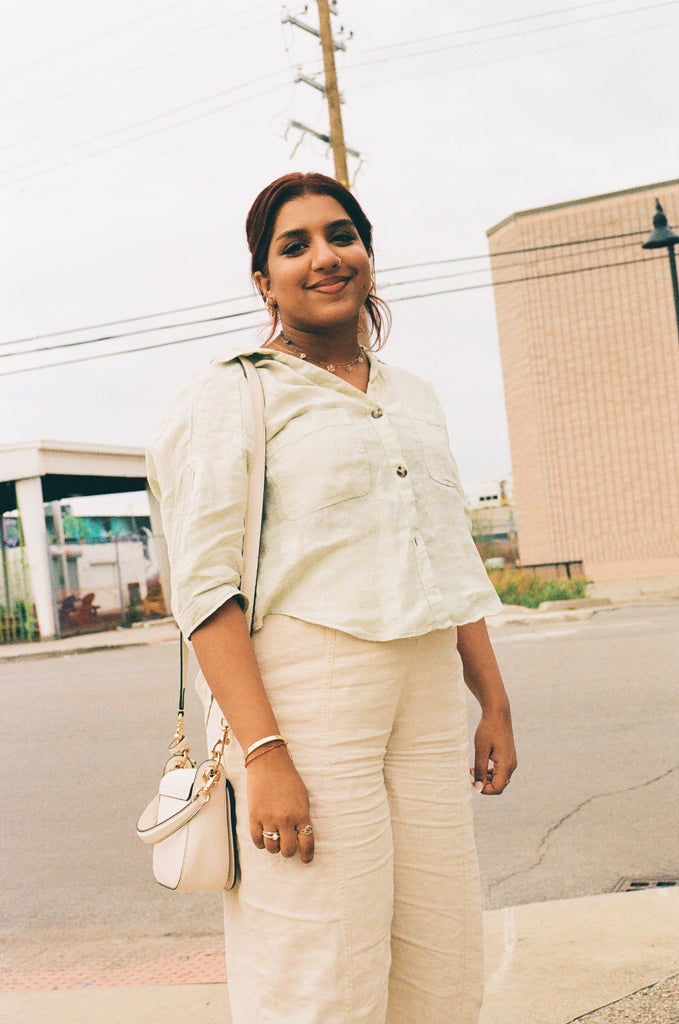 “It’s so nice out today so I wanted a pop of colour. What inspires my everyday outfit is one staple piece to wear always, and then comfort.” — Hannah Mulligan, 24, retail and social media manager at Eugenie Detroit