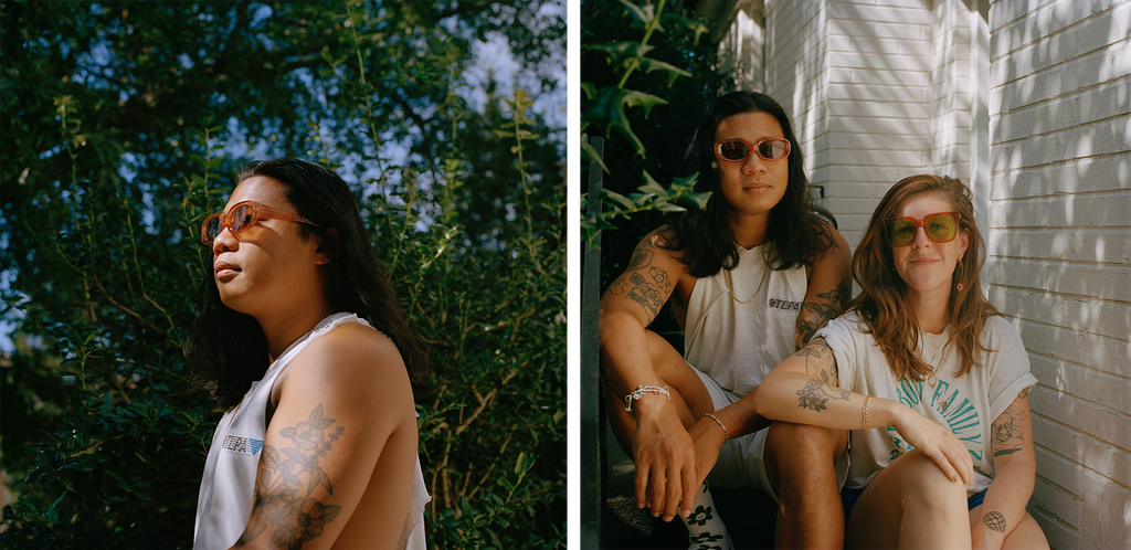 Ally: “This is my errand uniform. The [cowboy boots] are vintage from Atomic. The [shorts] are from a yard sale. [The shirt] is vintage from somewhere in California. Both of us wear a lot of heirloom and pawn shop jewellery, as well as vintage tees…” — Ally Smith, 30, bar manager at Puma Yu’s (right)