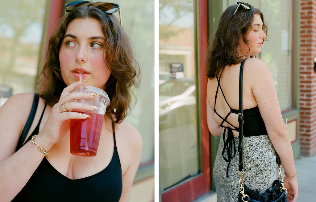 “I just bought this skirt so I wanted to wear it. This is a swimsuit that I am wearing as a bodysuit. My style is a little more minimalist.” — Gloria Saccoccio, 19, student