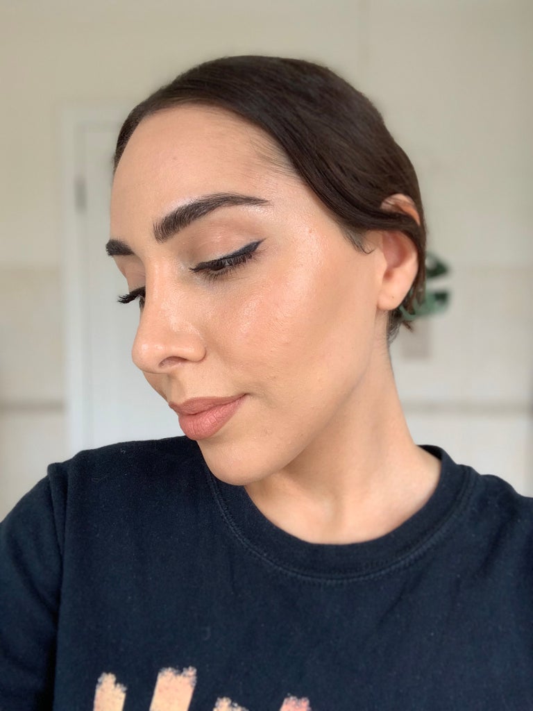 I made my first mistake applying the serum to a dry Beautyblender, which seemed to soak up the product immediately. TikTok’s Amelia recommends pumping the serum onto a slightly damp sponge (remember to squeeze out the excess water) and bobbing it over the skin with a light hand so as not to shift your makeup.