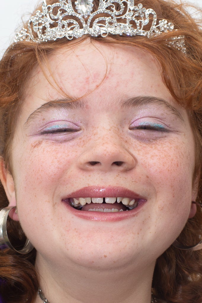 “Using the prom dresses came from a memory, actually,” Rowse recalls. “It was the early 2000s and I was watching my friend’s older sisters get ready for prom. In that moment, the space was filled with girls supporting each other, celebrating each other, doing their hair and completely, unashamedly enveloping themselves in femininity and female friendship. I’d never seen anything like it.” Other outfits in the series are nods towards the fashion of pink-loving, girl power idols like Britney Spears and Paris Hilton, she says, adding that the young women she works with often want to go all out. “The bigger the hair, the gaudier the dresses, the more the glitter… Whatever it took to make them feel amazing, we did it!” she smiles.