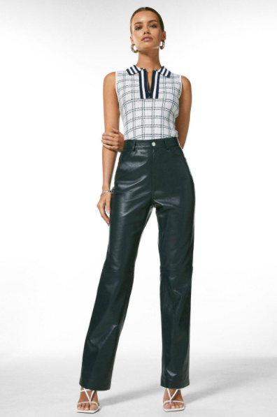 Oasis Straight Leg Leather Trouser, $, available at Oasis
