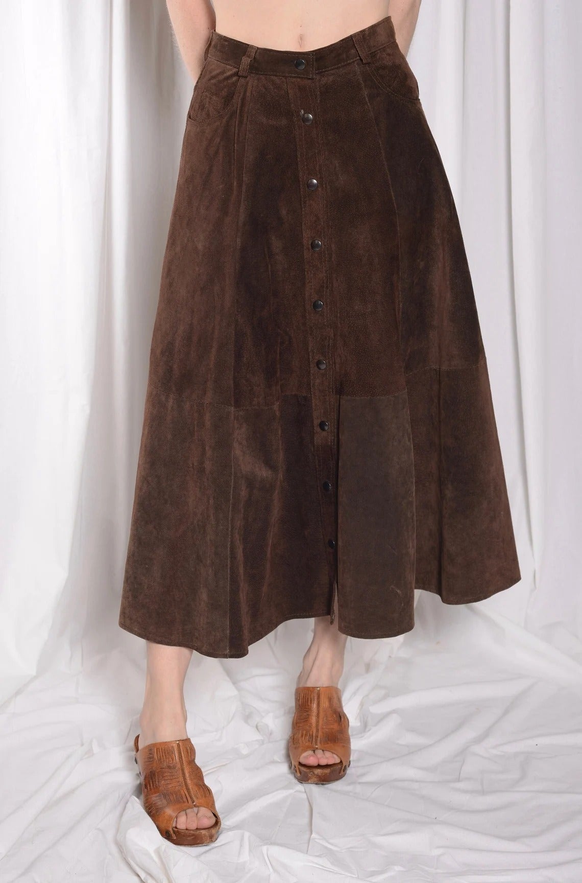 TenderloinVintage 1980s Chocolate suede leather long a-line skirt, $, available at Etsy