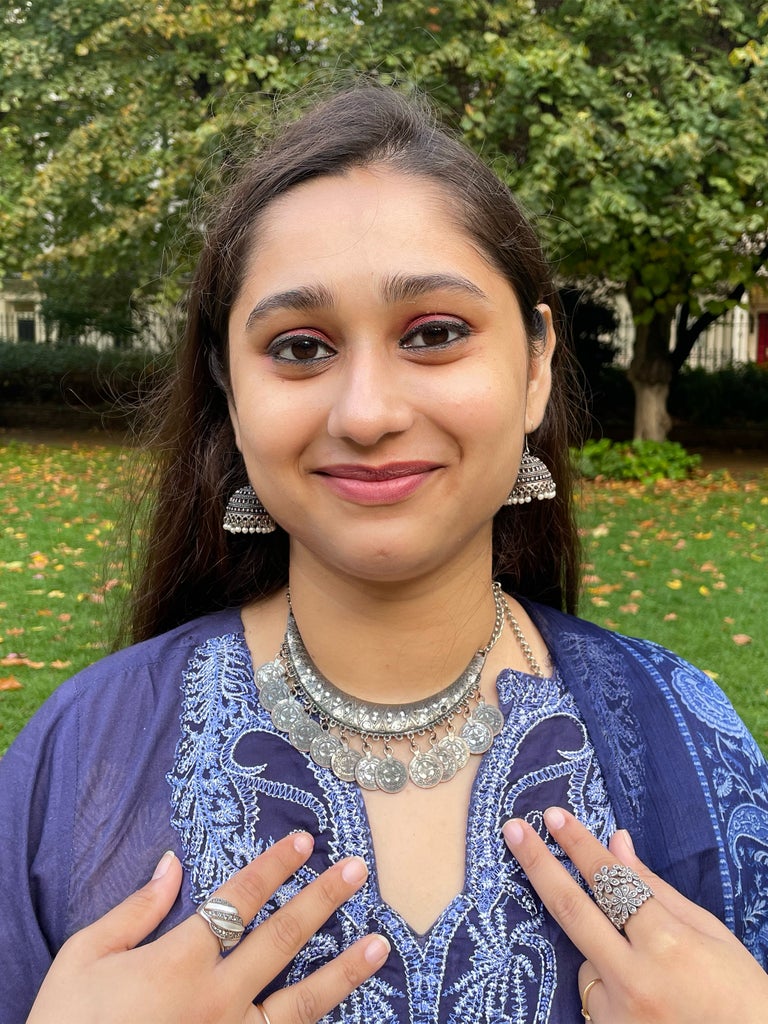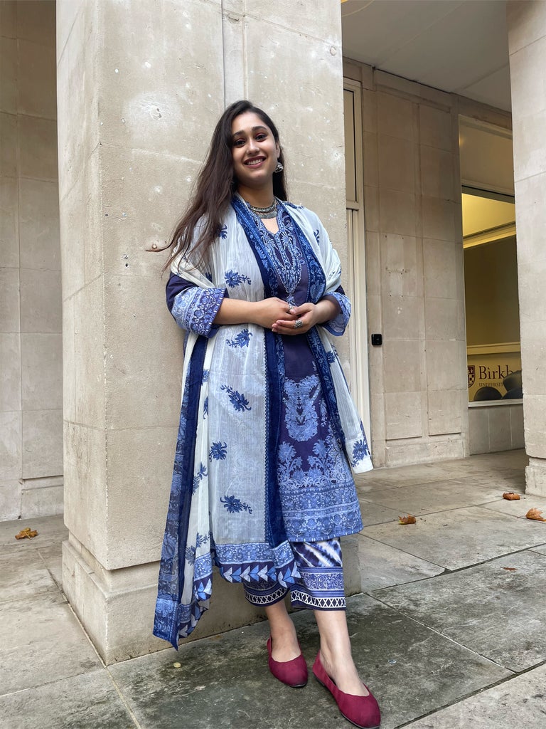 The only traditional piece I brought over to the UK was a dark blue Pakistani suit, an elegant set with white embroidery on the neck and cuffs. It has a sky blue trim and its white dupatta (a traditional Hindu shawl) is adorned with beautiful blue flowers. Since the festival of lights stands for positivity, hope and love, I wore the suit to represent peacekeeping, despite Pakistan’s strained relationship with India. I wore the Afghani jewellery to represent the citizens who fight every day for a free country, and my family’s rings as souvenirs of their love. Each of these carefully chosen items was an important piece of the puzzle making up my first Diwali away from home.