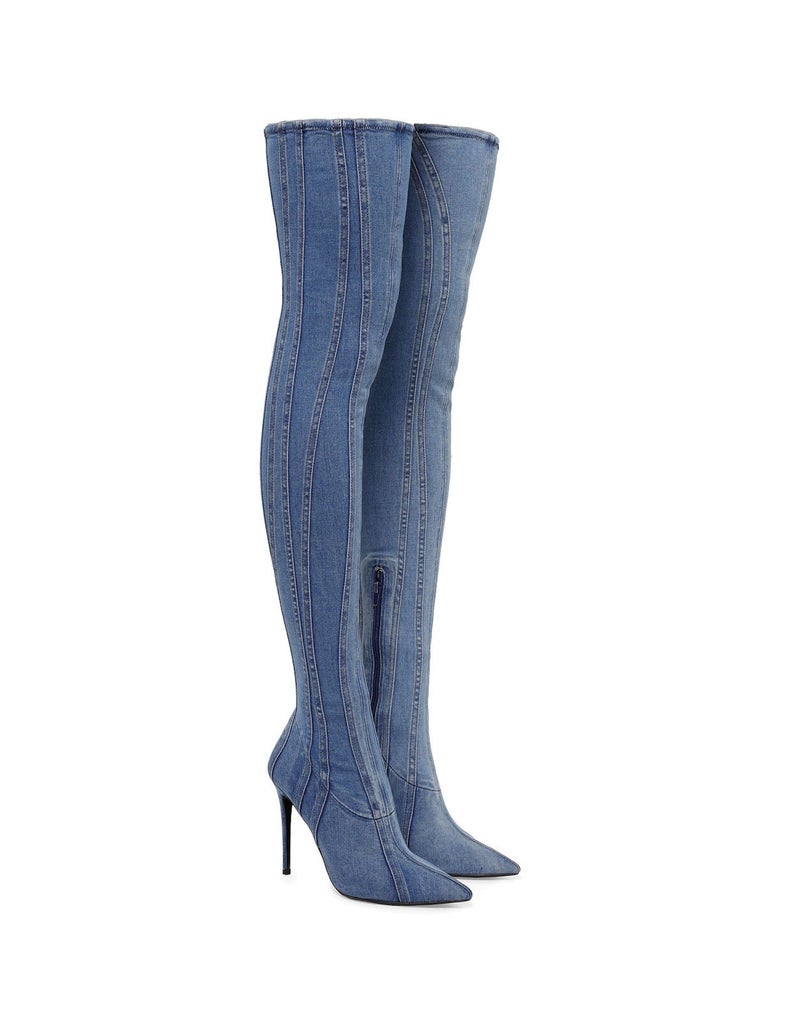 While these bold boots might conjure memories of a denim-clad Julia Fox during her pop culture reign earlier this year, the denim boot may have a bit more sticking power. “Boots the house down!” Demange says of this over-the-knee Diesel pair, which screams Y2K influence. She suggests pairing these with a baby tee and mini skirt or a bodycon dress. Just to add a little more oomph.
