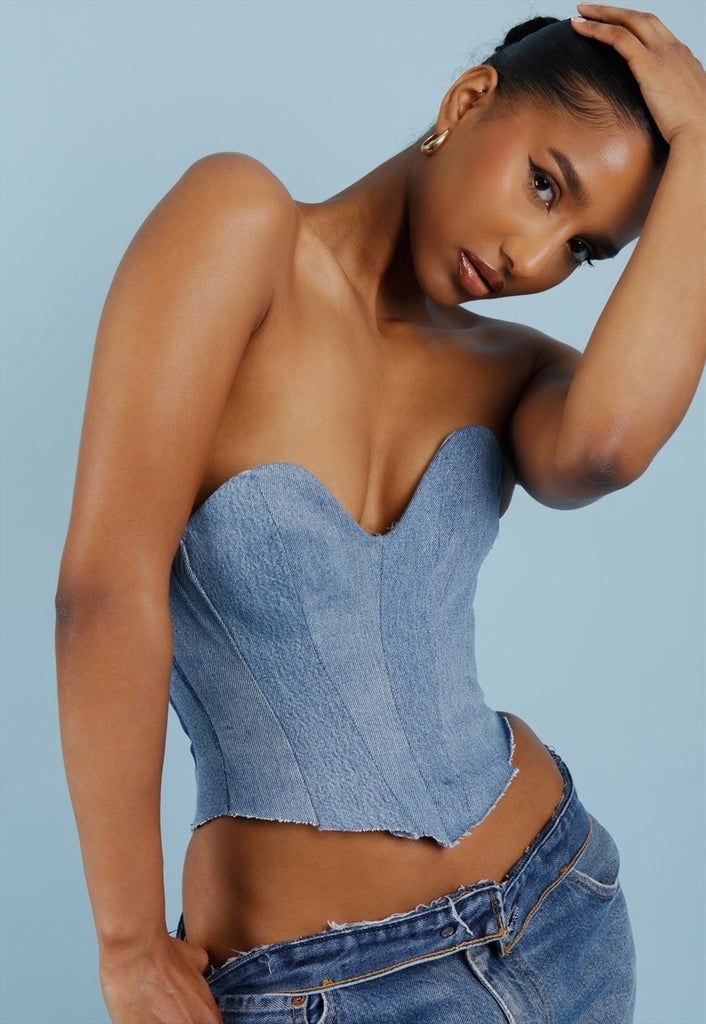 Corsets are still the going-out top of the moment and a denim version is this season’s fresh, Y2K take on the look. Demange recommends going vintage. Look to this form-fitting Levi’s iteration for some inspo. “Take this corset and make a double denim moment. Pair with boyfriend jeans and you are good to go,” Demange says. Take style notes from Maya Jama or Karrueche in their recent double denim corset ‘fits.