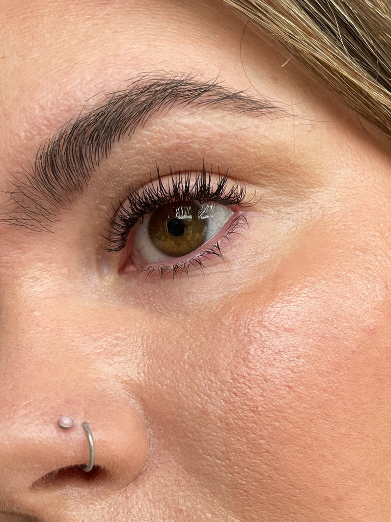A new patented technology, Gel-Lys is a gel curing technique that bonds and cures false lashes to the natural ones using a safe, low-level LED light (much like the light delivered during professional facials or from at-home LED face masks). Similar to the way LED light is used to cure gel nail polish, it’s a method that Camilla came across around three years ago. Even now, there is only a limited number of technicians who are trained and qualified to use it. The Gel-Lys claims are impressive to say the least: not only does it supposedly reduce the usual 24 to 48 hour curing time required for traditional lash adhesive but it also increases lash longevity by up to 30%. That means clients can book in every seven weeks or so for infills, although Camilla says that some of her clients have had their lashes last up to 10 weeks.